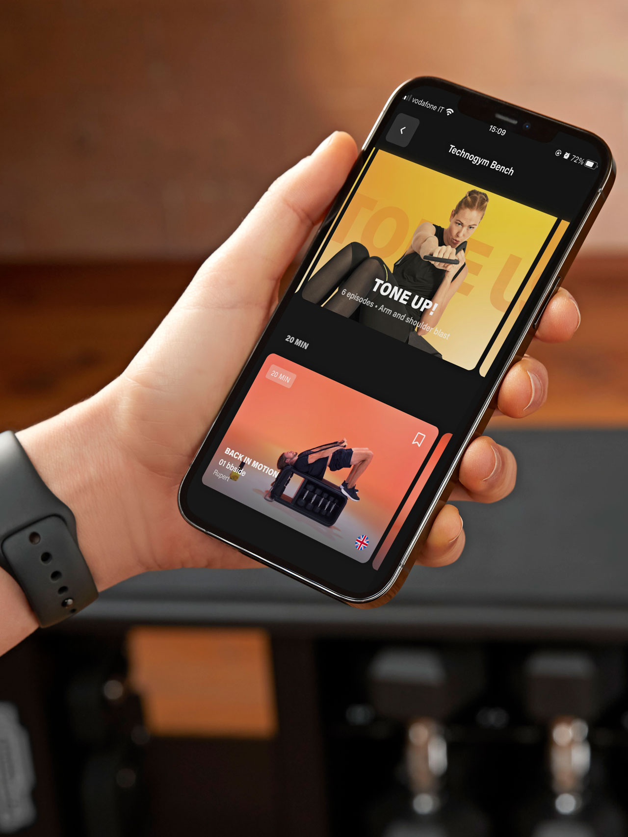 Раскройте весь потенциал домашней тренажёрной скамьи благодаря множеству тренировок, доступных в приложении Technogym App.