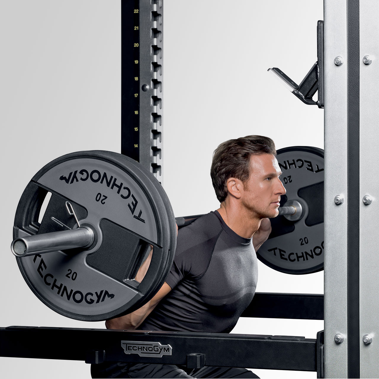 Благодаря шагу регулировки в 6 см каждый пользователь может идеально настроить исходное положение штанги под свои параметры.