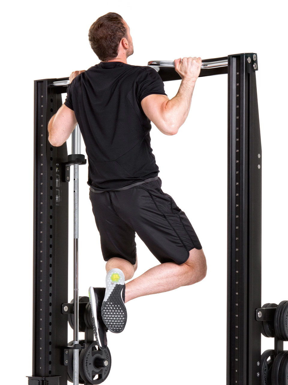 Хромированная штанга имеет рукоятки Multi-grips , позволяющие выполнять различные упражнения на подтягивание.