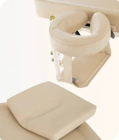 Два подголовника, идущих в комплекте, — с желобами для масла и общего массажа ComfortEye — удобно крепятся к любому торцу стола, что позволяет использовать стол Bora-Bora на пределе его возможностей.