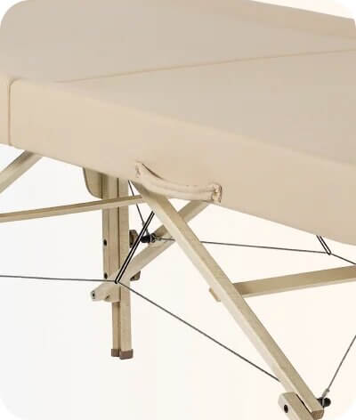 Складной стол Bora-Bora, обладая усиленной конструкцией с мощным каркасом из прочного бука, идеально подойдёт для общего и аюрведического массажа маслом.