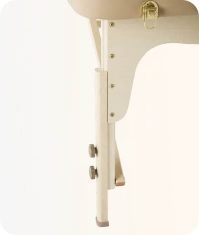 Регулируемая высота стола (60,5–86 см) позволяет специалисту с комфортом приступить к массажной практике и избежать в дальнейшем большой нагрузки на кисти рук, мышцы плеча и предплечья.