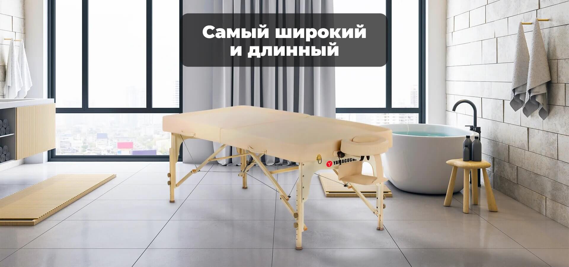 Bora-Bora — самый широкий и длинный складной массажный стол из всей линейки профессионального оборудования Yamaguchi, разработанный инженерами-проектировщиками специально для совершенно особой техники массажа аюрведа.