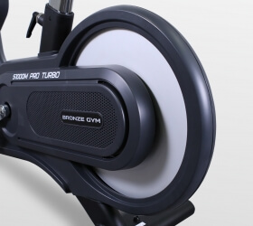 BRONZE GYM S1000M Pro Turbo - профессиональный спин-байк для клубных тренировок в режиме максимальных нагрузок (full commercial). Все узлы и детали проверены многолетним опытом эксплуатации в различных условиях по всему миру. Безусловно, надежность - одна из важнейших характеристик любого оборудования, но отличается BRONZE GYM S1000M Pro Turbo не только этим. В первую очередь, стоит выделить его великолепную биомеханику. В основе находится ременной привод с преднатяжителем и магнитной системой нагружения. Последняя является самой прогрессивной разработкой в биомеханике спин-байков и обеспечивает самую высокую степень эффективности и комфорта. Усиливает великолепный биомеханический эффект маховик с инерционным весом 20 кг, выполненный по уникальной технологии с использованием алюминиевого обода. Его отличие - абсолютно ровный диаметр и равномерное распределение веса (плотности) по своей форме. Это еще один плюс в копилку ровного плавного хода и самого высокого коэффициента инерции. BRONZE GYM S1000M Pro Turbo отлично проходит так называемый "Тест на 6 часов" (проверка равномерности распределения нагрузки при педалировании, проводится в положении стоя; как правило, большинство спин-байков "проваливаются" (скорость увеличивается, нагрузка падает) при движении шатуна из верхнего положения в нижнее).