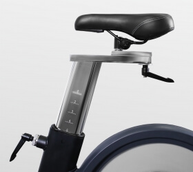 Важнейшую роль в биомеханике играет рама. Мощный стальной профиль из легированной стали с общим весом изделия 64,5 кг является одним из самых тяжелых среди спин-байков. Рама надежна, устойчива, не подвержена деформации и отлично защищена порошковой краской от коррозии. Подседельный и рулевой штырь, выполненные из высокопрочного стального профиля с надежным хромированным покрытием, регулируются во всех возможных положениях и подходят для пользователей практически любого роста и веса. На них не остается царапин при смене положения сидения или руля, они долговечны, недеформируемы и абсолютно устойчивы к воздействию пота. Само сиденье наполнено гелевыми подушками, выполнено в эргономичной форме и аналогично тем сидениям, который используются на спортивных велосипедах.