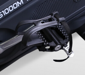К числу других преимуществ BRONZE GYM S1000M Pro Turbo относятся быстро настраиваемые компенсаторы неровностей пола, износостойкие полиуретановые транспортировочные ролики и регулируемый держатель для бутылки. Многопозиционный руль с подлокотниками, полностью закрытый от влаги прорезиненной полиуретановой защитой, дает возможность принять спортивное "шоссейное" положение. Помимо всего прочего, здесь стоят премиальные педали типа JD-304V на стальных подшипниках. Они выполнены по технологии "Toe clip" (система рамок и ремешков на педали для крепления ноги) и, кроме того, подготовлены для использования специальной велообуви (необходим SPD переходник, приобретается отдельно).