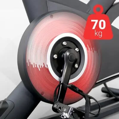 Тяжелый сбалансированный маховик (инерционная масса - 70 кг) и колодочная система нагрузки обеспечивают тихий плавный ход на всем цикле вращения и комфорт тренировки.