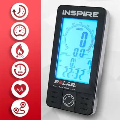 На компактном мониторе (консоль Inspire IC2D продается отдельно) отображаются необходимые показатели тренировки: время, скорость, пройденное расстояние, обороты в минуту, расход калорий.