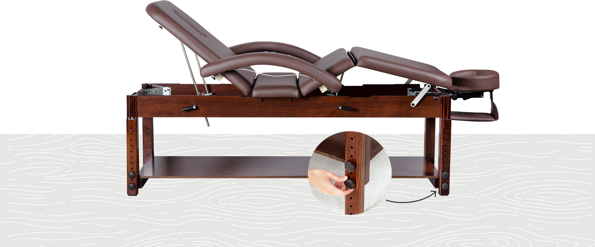 Каркас из экологичного бука и благородный шоколадный цвет позволяют Yamaguchi Naomi стать центральной фигурой в любом массажном кабинете. Сочетание минимализма и гармонии массажного стола не оставят без внимания ценителей тонкого вкуса.