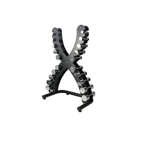 Выполена в стильной Х образной форме и обеспечивает хранение 10 пар гантелей 1-10 кг/