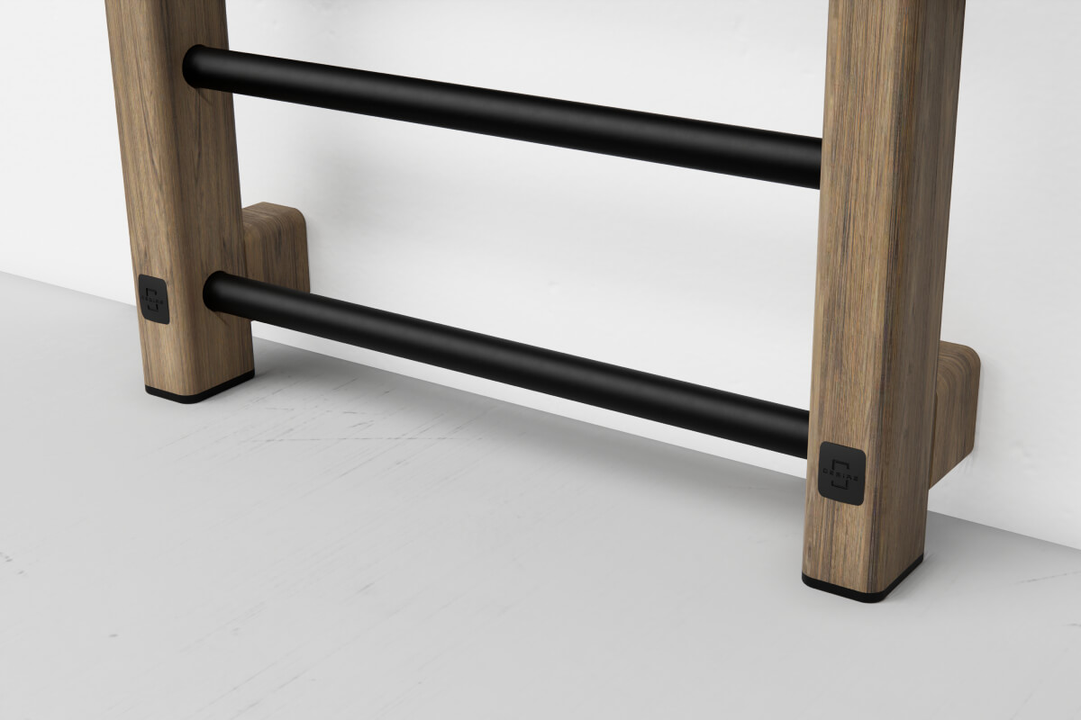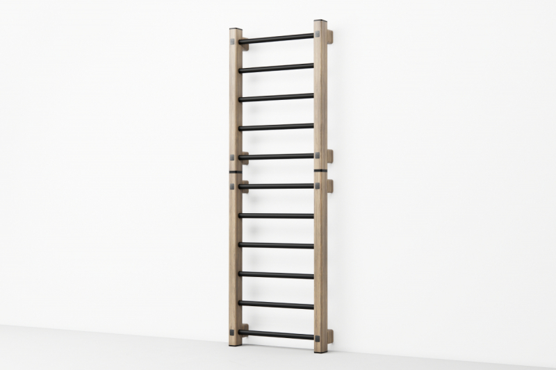 Тренажер легко собирается из двух частей и крепится к стене на любом уровне. Всего восемь отверстий, чтобы прочно зафиксировать всю конструкцию. Сборку и монтаж при желании можно произвести самостоятельно, а все крепления скрыть под аккуратными, красивыми заглушками с фрезерованным логотипом.