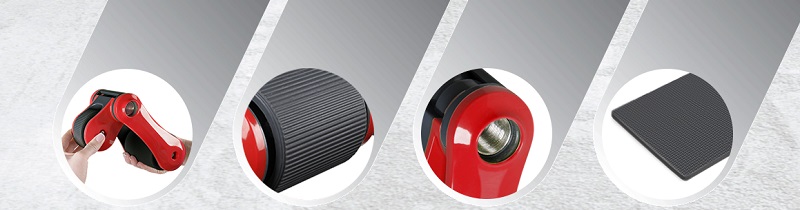 - Специальная конструкция тренажёра с двумя колёсами обеспечивает дополнительную стабильность во время упражнений.