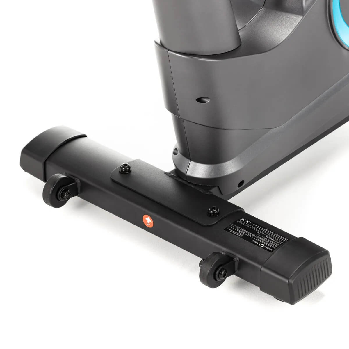 Интеграционные технологии Bluetooth позволяют работать с мобильными фитнес приложениями, такими как Kinomap™ и Zwift™, обогащая тренировку виртуальными возможностями. Подставка под планшет, транспортировочные ролики, компенсаторы неровностей пола и энергосбережение делают использование велотренажера максимально удобным и эффективным.