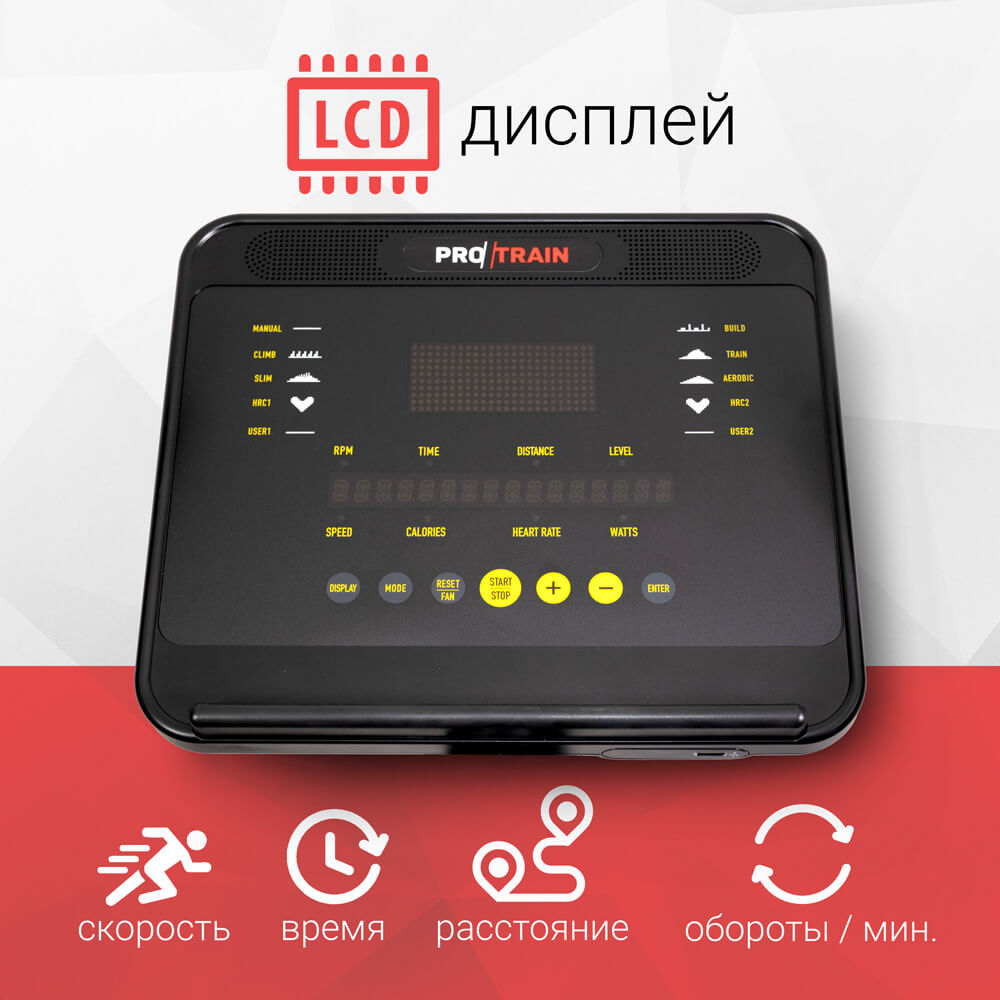 LED-дисплей отображает основные показатели тренировок. 36 встроенных программ для мотивации и эффективности.