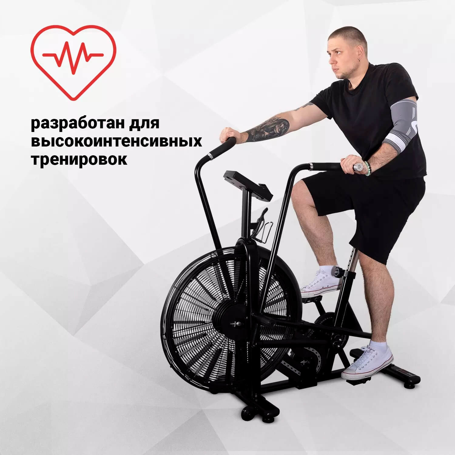 елотренажер Protrain ProBike-005, air bike — универсальный кардиотренажер, позволяющий проработать мышцы всего тела. Оборудование тренирует выносливость, помогает держать в норме вес и мышцы в тонусе.