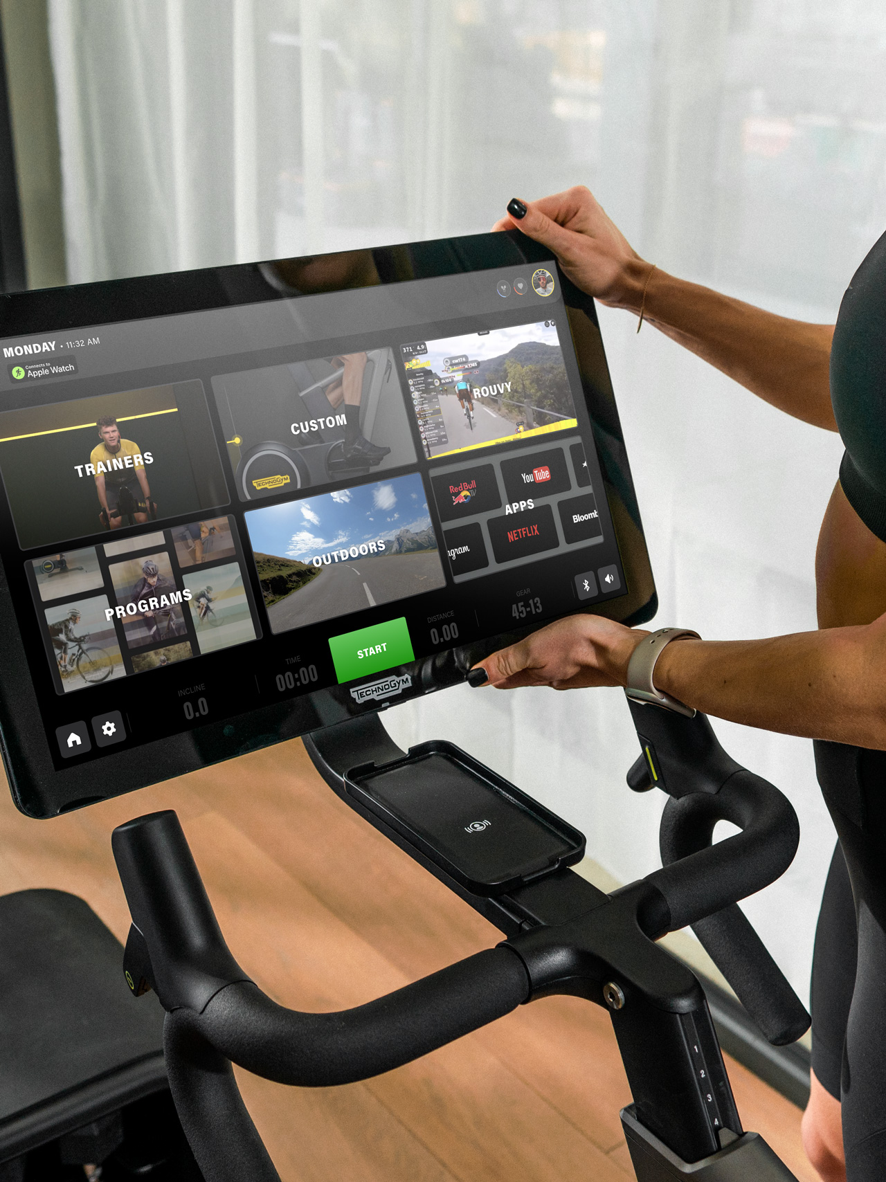 Испытайте свои силы в режиме Outdoors: прокатитесь по реальным маршрутам, используя все возможности велотренажера Technogym Ride и его мощность.