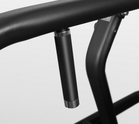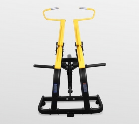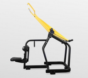 Независимое расходящиеся движение рычагов моделирует естественную траекторию движения. Каркас выполнен из толстостенного профиля 50х100 мм полукруглого сечения толщиной 2,5 мм. Удобное контурное сиденье из искусственной кожи на натуральной подложке. Сиденье имеет трещоточный механизм для быстрой регулировки по вертикали. Два встроенных штыря для размещения весовых дисков.