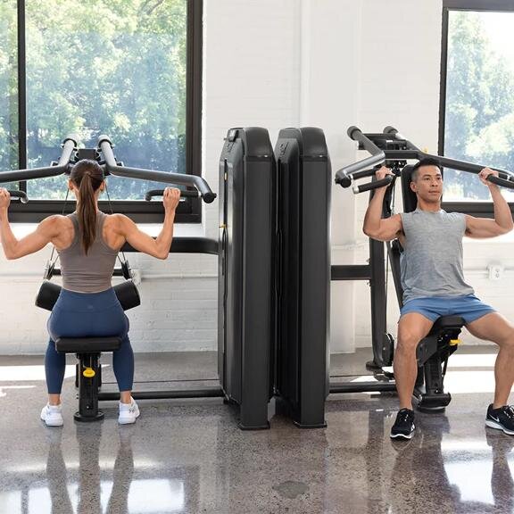 Все наши грузоблочные тренажеры имеют низкую высоту стека для чистых, открытых линий обзора, а также экономящие пространство конфигурации спина к спине, легкодоступные открытые рамы, нескользящую полку для хранения и подставку для устройств.