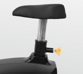 U1100M PRO – это велоэргометр с вертикальной посадкой коммерческого класса, предназначенный для использования в крупных премиальных и бюджетных фитнес клубах. Тренажер, как и подобает профессиональному уровню, оборудован лучшими техническими характеристиками. На U1100M достигнуты оптимальные биомеханические свойства. Велотренажер оснащен электромагнитной системой нагружения с генератором (GMS). В основе маховик с инерционным весом, эквивалентным 18 кг. Сиденье широкое и мягкое, регулируется по вертикали под любой рост пользователя. На базе педального узла литой трехкомпонентный шатун на подшипниках. Сами педали широкие, рассчитаны на любой размер ноги и фиксируются специальными регулируемыми ремешками. Кроме того, они покрыты специальным антискользящим рельефом. Велотренажер весьма тяжелый – 69 кг и выдерживает нагрузку до 180 кг включительно. Оборудование поставляется в упаковке из гофрированного картона.