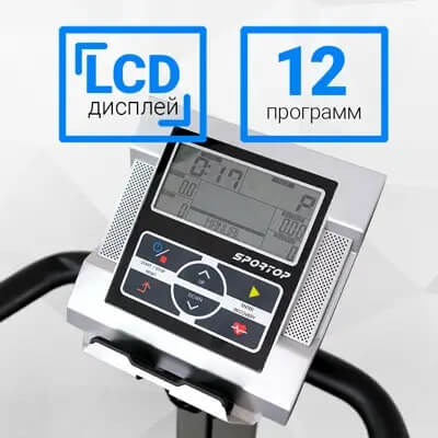 В память компьютера велоэргометра внесены 12 тренировочных программ. Предлагаемые режимы позволяют каждому пользователю подбирать формат упражнений. На LCD-дисплее отображаются основные показатели.