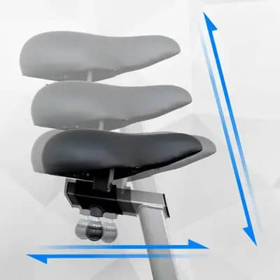 Положение сиденья изменяется в горизонтальной и вертикальной плоскостях. Руль отклоняется от себя / к себе. За счет этого тренироваться на велоэргометре могут пользователи разного роста.