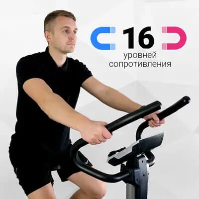 16 уровней сопротивления позволяют подобрать нагрузку под цели и возможности каждого пользователя. Изменяется нагрузка при помощи рукоятки, расположенной под рулем.