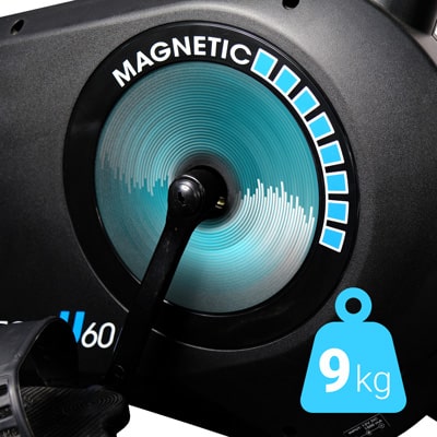 Сбалансированный маховик весом 9 кг обеспечивает плавный ход и бесшумную работу, исключает вибрацию велоэргометра во время занятий. Траектория движений максимально приближена к естественной благодаря Q-фактору - 20 см.