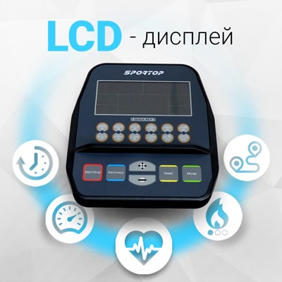 - Показания консоли Время, пройденная дистанция, скорость, затраченные калории, пульс, мощность, уровни нагрузки