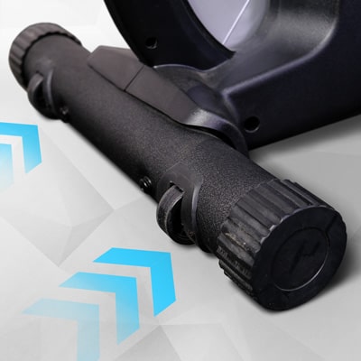 Вес тренажера — всего 45 кг. С помощью транспортировочных колесиков его легко можно переместить в удобное для тренировки или хранения место.