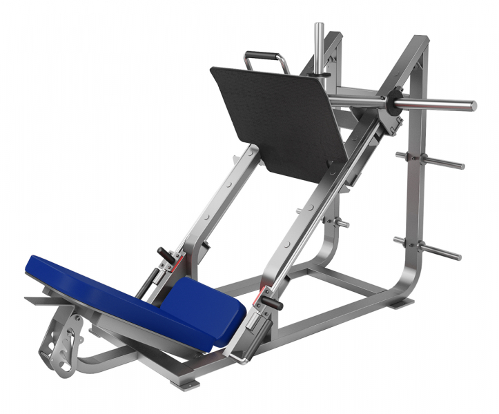 Силовой тренажер FP-105 предназначен для исполнения упражнений, направленных на тренировку мышц бедра: квадрицепса, бицепса бедра, а также мышц внутренней стороны бедра и ягодиц. Выполняемое действие: жим ногами в положении лёжа под углом 45 градусов.