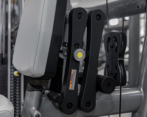 Двойные шарниры над головой тренажера SPL-0900 серии Palladium позволяют рукояткам перемещаться в легком восходящем движении для максимального задействования мышц, в то время как односторонние рычаги для пресса сходятся под углом 25 градусов перед пользователем, а регулируемая задняя подкладка обеспечивает полное сочленение плечевого комплекса.