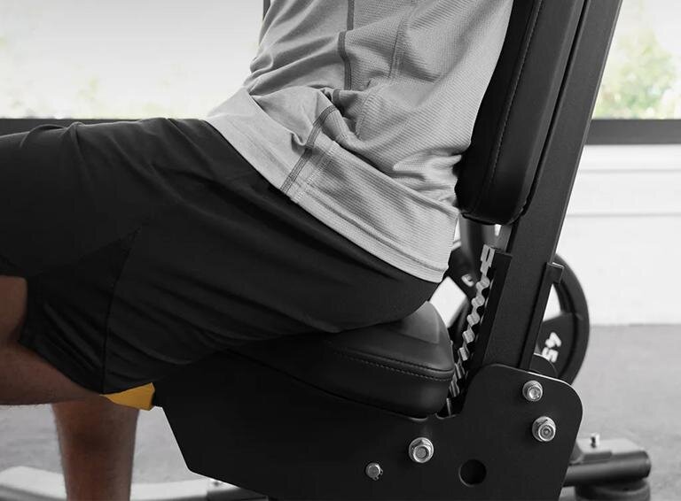Регулировка сиденья с помощью газ-лифтов облегчает любителям силовых тренировок быструю адаптацию тренажера к уникальным параметрам своего тела.